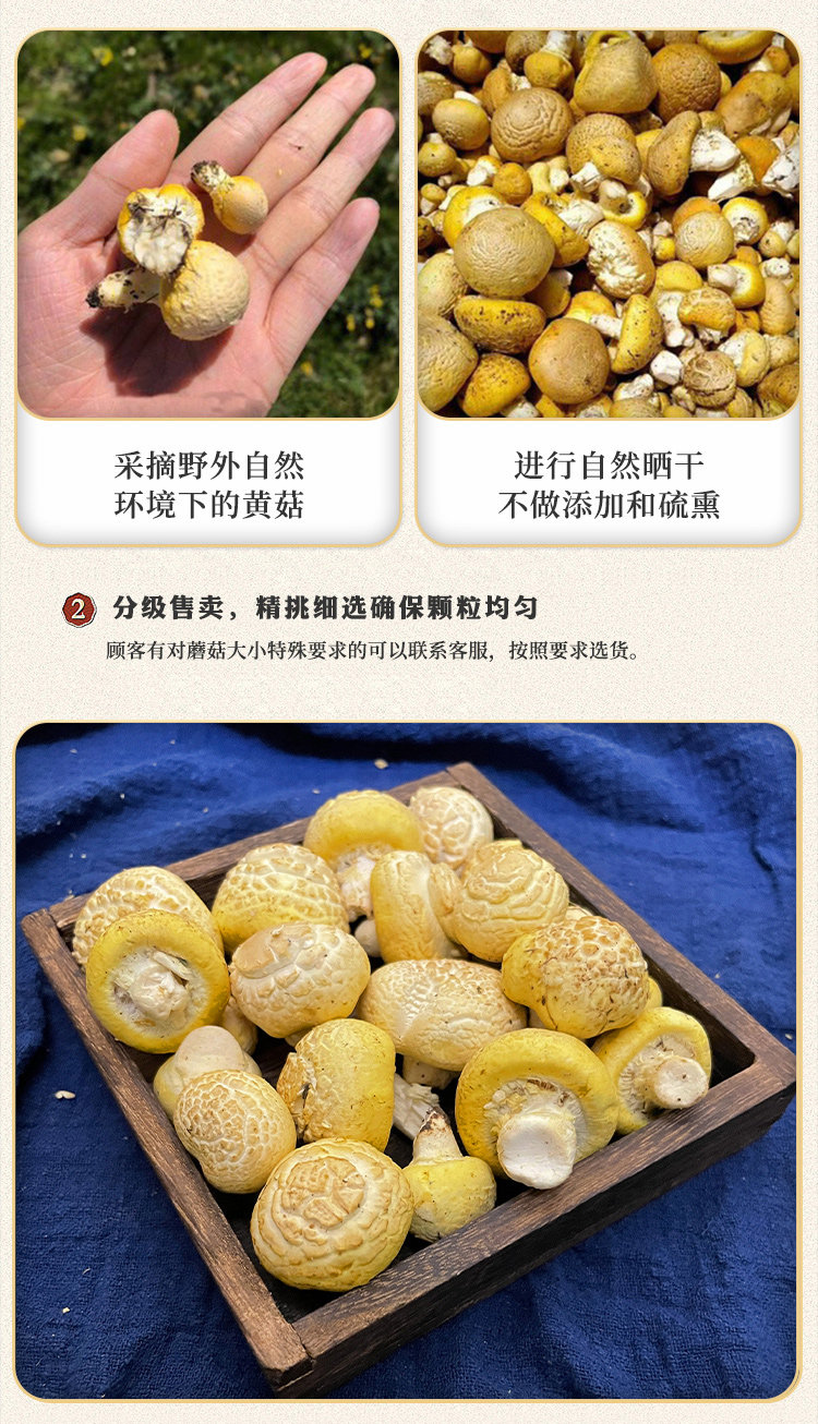 2024青海特产祁连山小黄蘑菇野生新鲜黄菇菌皇菇又名石渠白菇2斤